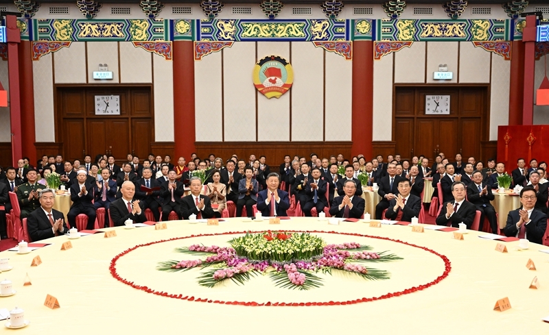 12月31日,全国政协在北京举行新年茶话会。党和国家领导人习近平、李强、赵乐际、王沪宁、蔡奇、丁薛祥、李希、韩正出席茶话会并观看演出。新华社记者 谢环驰 摄