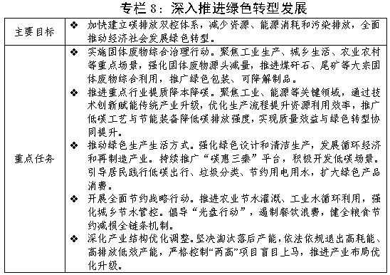 (七)全面推进经济社会发展绿色转型,厚植高质量发展绿色底色。牢记“国之大者”,强化重点领域生态环境保护,协同推进降碳减污扩绿增长。一是持续推进生态环境治理。扎实开展涉秦岭问题整改,依法整治秦岭违规穿越探险、破坏野生动植物资源等行为,推进秦岭北麓“五水协同”治理。坚决落实黄河流域生态大保护大协同三年行动计划涉陕任务,开展黄河干流保Ⅱ类和支流水质消劣及黄土高原“水美黄河”行动,加大石川河等支流生态修复和保护,推进“三北”工程建设,因地制宜推广“蓄提储灌”等节水新技术新模式。深入推进南水北调中线工程水源涵养区保护,开展汉丹江流域涉金属矿产开发生态环境综合整治。二是深化污染防治攻坚。统筹推进关中地区产业、能源、供热、交通运输四大结构调整,加快实施关中工业炉窑清洁能源替代,精准治理季节性污染,推进重点城市空气质量稳步提升。扎实开展土壤污染源头防控,协同实施非法倾倒处置固废专项整治,开展重金属环境安全隐患等排查治理行动。深化入河排污口排查整治工作,推进工业园区污水集中处理设施达标排放,巩固城市黑臭水体治理成效。实施固体废物综合治理行动,大力发展循环经济。三是健全碳排放双控制度体系。统筹好经济增长和降碳目标,加快完善我省碳排放双控制度设计和政策体系,积极参与全国碳排放权、用水权等交易,持续加强“两高”项目管控,建设一批零碳园区。落实煤炭和石油消费达峰举措,加快钢铁、建材等领域低效产能出清,全面淘汰落后低效燃煤设备。实行年度碳排放预算全流程管理,推进产品碳足迹管理,开展碳排放考核评价,推动碳排放强度持续下降。